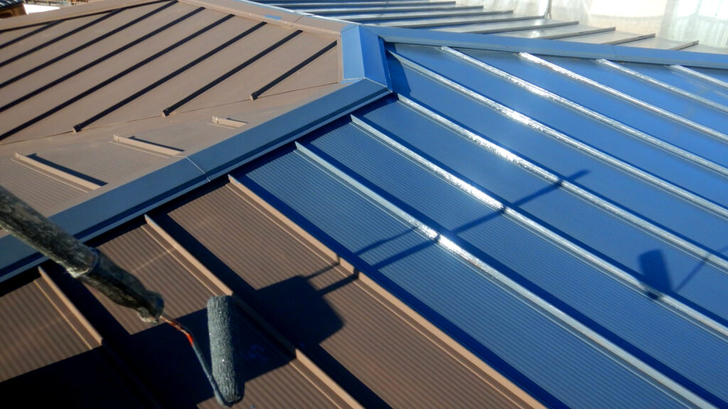 既存の屋根の上に新しい屋根材を重ねる施工。工期短くコストも抑えやすい。